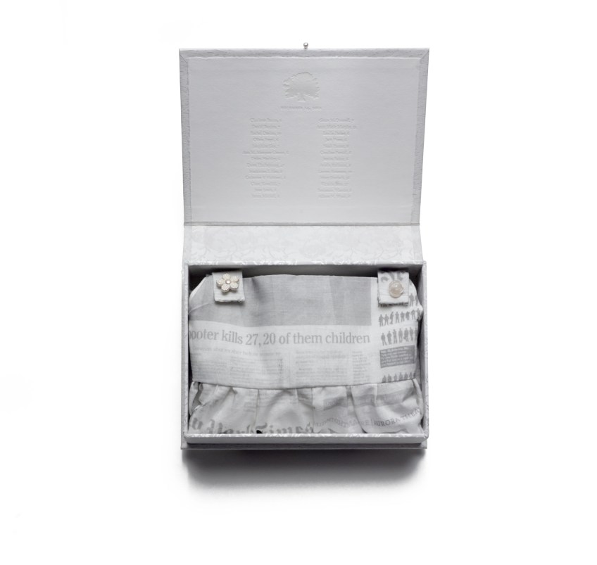 Newtown Memorial No. 2 Published November 25, 2014 at 3915 × 3711 in Newtown Memorial Silk, board, thread, cotton, archival ink, buttons, pearl, paper